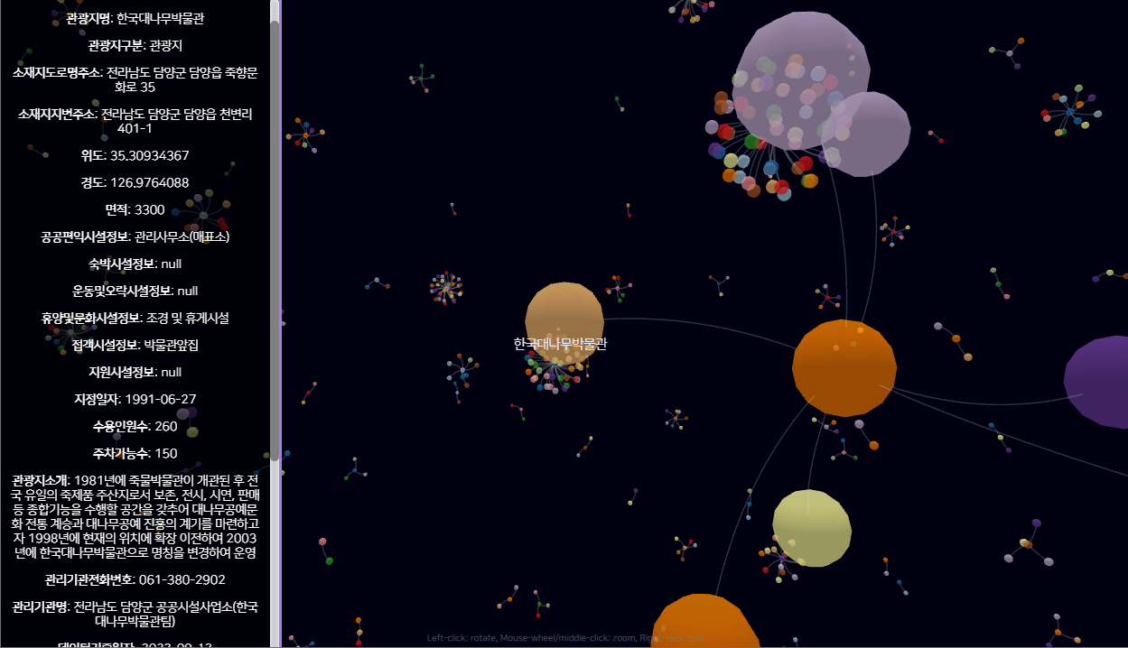 - 노드를 클릭하면 해당 관광지의 정보를 보여주는 infoBox 구현