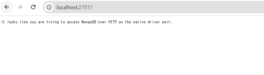 실행은 localhost:27017을 들어가면 확인할 수 있다.