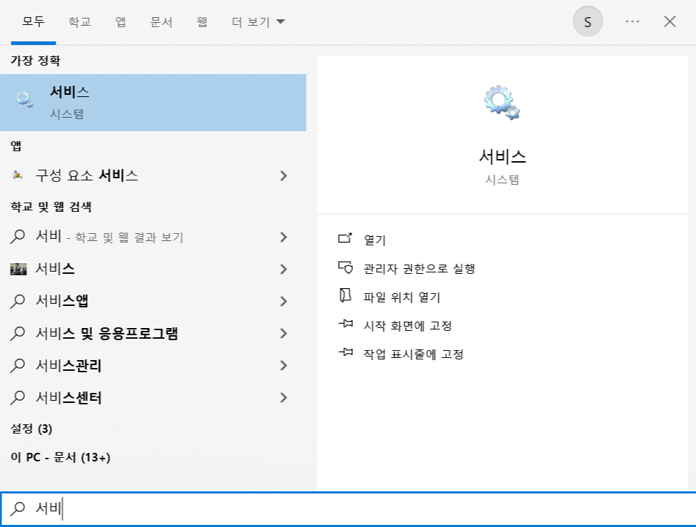 만약 체크했더라도 윈도우 > 서비스들어가서 '자동'을 '수동'으로 변경해주면 된다.